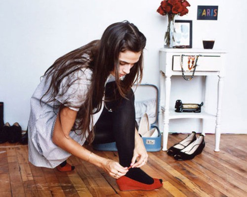 Time to pull out the tights. How lovely are these red shoes paired with black opaque tights? You may remember